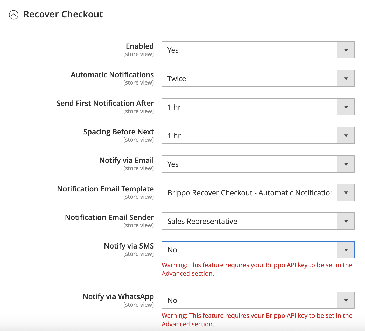 3Enable the desired integrations and payment methods from your store's Brippo configuration.