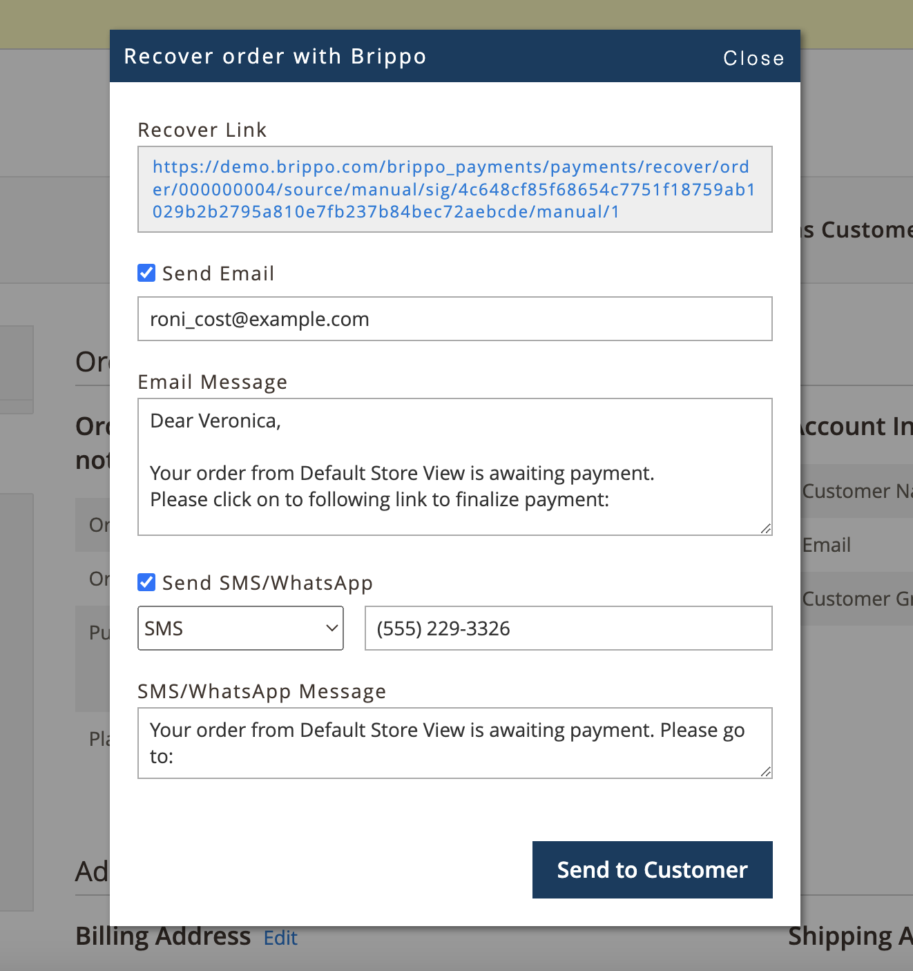 - Email Template: Select or customize the email template for customer communications.